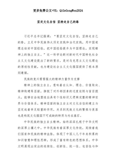 【七哥公文】2025年:坚定文化自信 坚持走自己的路+更多免费公文+VX:QiGeGongWen2024+更多免费公文+VX:QiGeGongWen2024