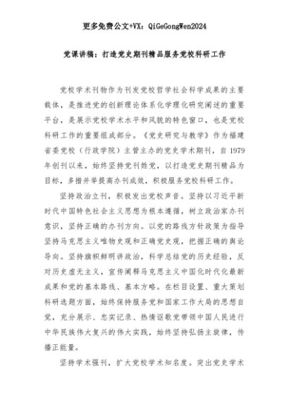 【七哥公文】2025年:党课讲稿:打造党史期刊精品服务党校科研工作+更多免费公文+VX:QiGeGongWen2024+更多免费公文+VX:QiGeGongWen2024