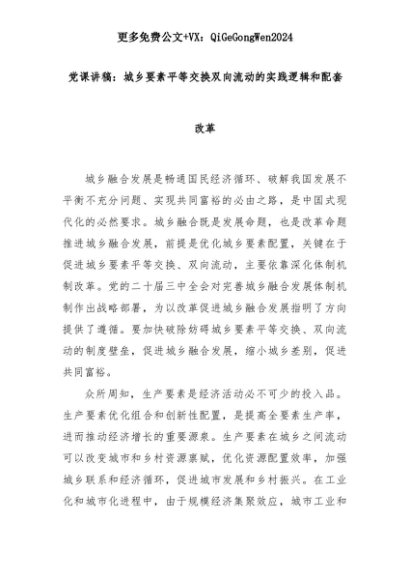 【七哥公文】2025年:党课讲稿:城乡要素平等交换双向流动的实践逻辑和配套改革+更多免费公文+VX:QiGeGongWen2024+更多免费公文+VX:QiGeGongWen2024