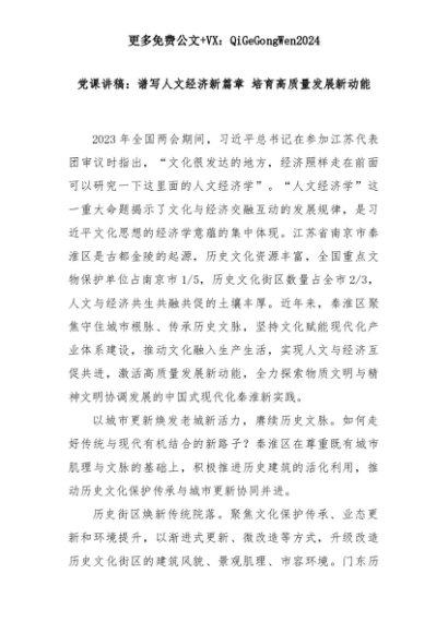 【七哥公文】2025年:党课讲稿:谱写人文经济新篇章 培育高质量发展新动能+更多免费公文+VX:QiGeGongWen2024+更多免费公文+VX:QiGeGongWen2024