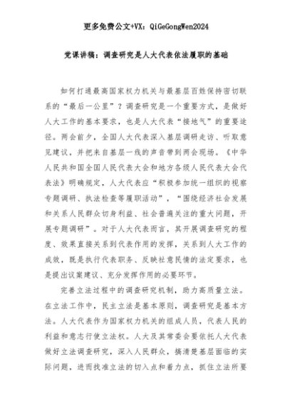 【七哥公文】2025年:党课讲稿:调查研究是人大代表依法履职的基础+更多免费公文+VX:QiGeGongWen2024+更多免费公文+VX:QiGeGongWen2024