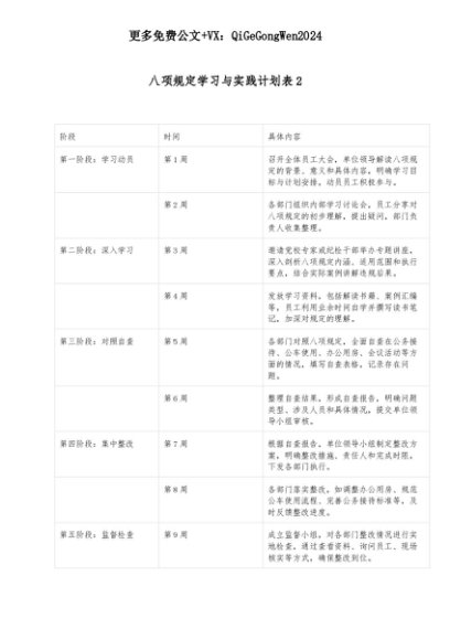 【七哥公文】2025年:八项规定学习计划表2+更多免费公文+VX:QiGeGongWen2024+更多免费公文+VX:QiGeGongWen2024
