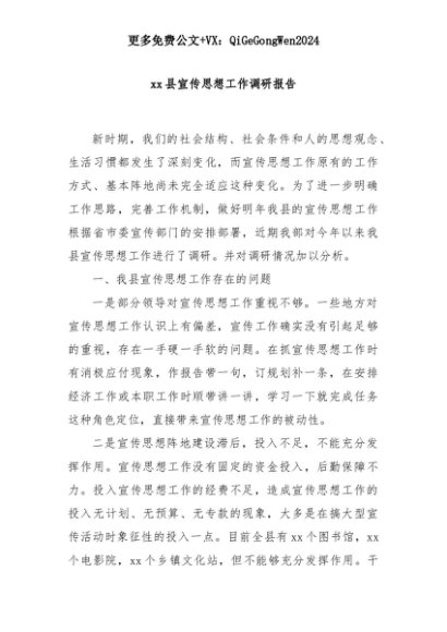【七哥公文】2025年:xx县宣传思想工作调研报告+更多免费公文+VX:QiGeGongWen2024+更多免费公文+VX:QiGeGongWen2024