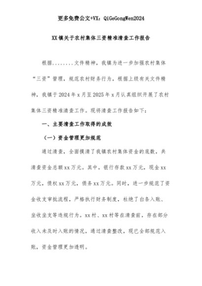 【七哥公文】2025年:2025.关于农村集体“三资”精准清查工作报告+更多免费公文+VX:QiGeGongWen2024+更多免费公文+VX:QiGeGongWen2024