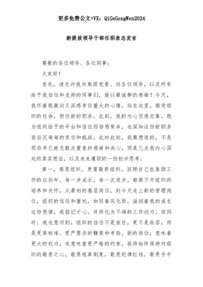 【七哥公文】2025年:新提拔领导干部任职表态发言+更多免费公文+VX:QiGeGongWen2024+更多免费公文+VX:QiGeGongWen2024