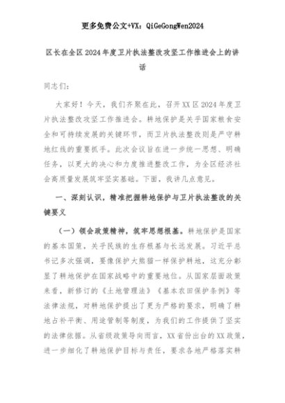 【七哥公文】2025年:区长在全区2024年度卫片执法整改攻坚工作推进会上的讲话+更多免费公文+VX:QiGeGongWen2024+更多免费公文+VX:QiGeGongWen2024