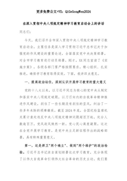 【七哥公文】2025年:在深入贯彻中央八项规定精神学习教育启动会上的讲话+更多免费公文+VX:QiGeGongWen2024+更多免费公文+VX:QiGeGongWen2024