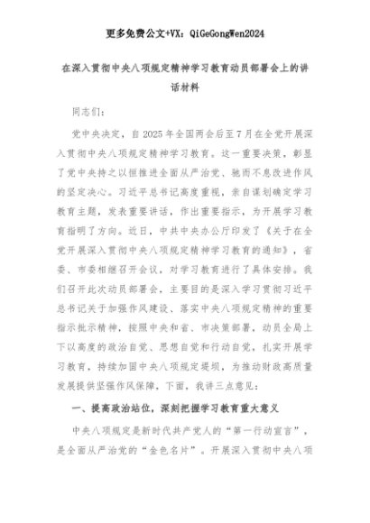 【七哥公文】2025年:在深入贯彻中央八项规定精神学习教育动员部署会上的讲话材料+更多免费公文+VX:QiGeGongWen2024+更多免费公文+VX:QiGeGongWen2024