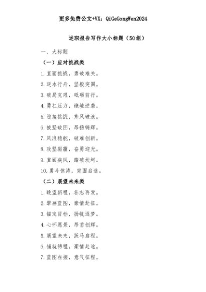 【七哥公文】2025年:(50组)述职报告写作大小标题+更多免费公文+VX:QiGeGongWen2024+更多免费公文+VX:QiGeGongWen2024