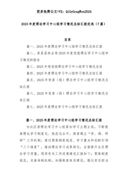 【七哥公文】2025年:(7篇)2025年度理论学习中心组学习情况总结汇报+更多免费公文+VX:QiGeGongWen2024+更多免费公文+VX:QiGeGongWen2024