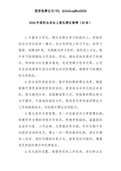 【七哥公文】2025年:2024年组织生活会上意见建议集锦(30条)+更多免费公文+VX:QiGeGongWen2024+更多免费公文+VX:QiGeGongWen2024