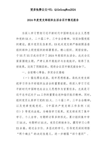【七哥公文】2025年:2024年度党支部组织生活会召开情况报告+更多免费公文+VX:QiGeGongWen2024+更多免费公文+VX:QiGeGongWen2024