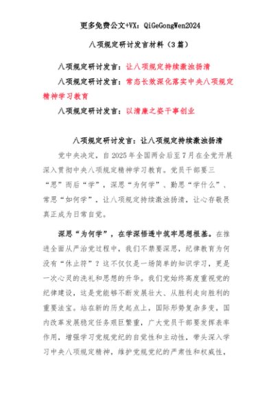 【七哥公文】2025年:(3篇)八项规定研讨发言材料+更多免费公文+VX:QiGeGongWen2024+更多免费公文+VX:QiGeGongWen2024
