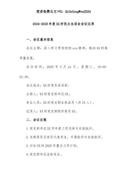 【七哥公文】2025年:2024--2025年度xx村党支部民主生活会会议记录+更多免费公文+VX:QiGeGongWen2024+更多免费公文+VX:QiGeGongWen2024