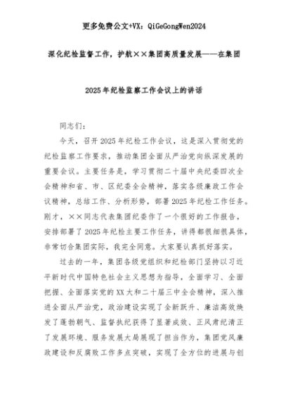 【七哥公文】2025年:深化纪检监督工作,护航××集团高质量发展——在集团2025年纪检监察工作会议上的讲话+更多免费公文+VX:QiGeGongWen2024+更多免费公文+VX:QiGeGongWen2024