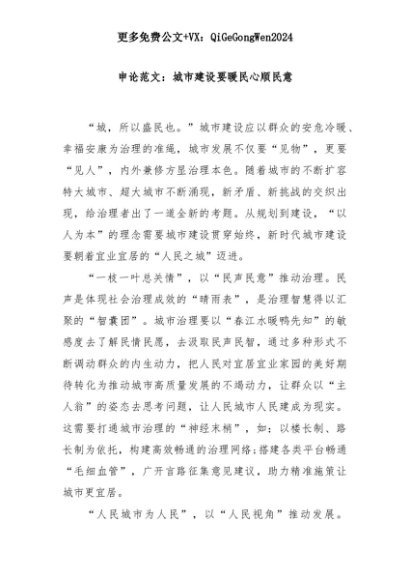 【七哥公文】2025年:申论范文:城市建设要暖民心顺民意+更多免费公文+VX:QiGeGongWen2024+更多免费公文+VX:QiGeGongWen2024