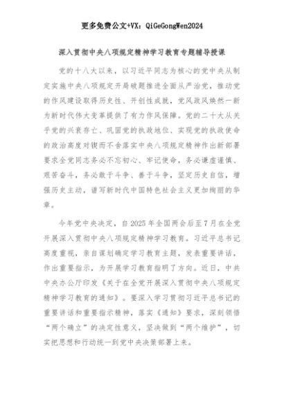 【七哥公文】2025年:深入贯彻中央八项规定精神学习教育专题辅导授课+更多免费公文+VX:QiGeGongWen2024+更多免费公文+VX:QiGeGongWen2024
