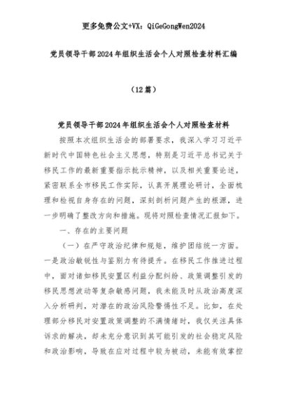 【七哥公文】2025年:(12篇)党员领导干部2024年组织生活会个人对照检查材料汇编+更多免费公文+VX:QiGeGongWen2024+更多免费公文+VX:QiGeGongWen2024