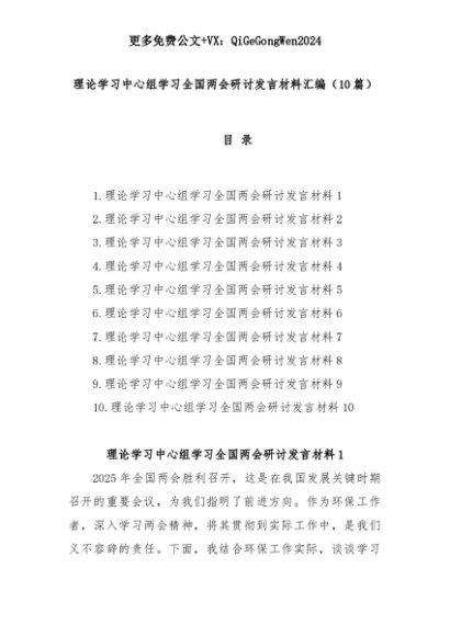 【七哥公文】2025年:(10篇)理论学习中心组学习全国两会研讨发言材料汇编+更多免费公文+VX:QiGeGongWen2024+更多免费公文+VX:QiGeGongWen2024