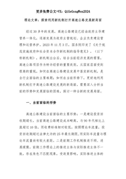 【七哥公文】2025年:理论文章:探索利用新机制打开高速公路发展新局面+更多免费公文+VX:QiGeGongWen2024+更多免费公文+VX:QiGeGongWen2024