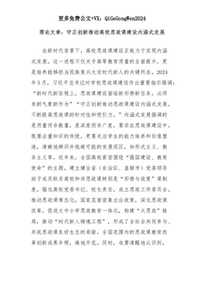 【七哥公文】2025年:理论文章:守正创新推动高校思政课建设内涵式发展+更多免费公文+VX:QiGeGongWen2024+更多免费公文+VX:QiGeGongWen2024