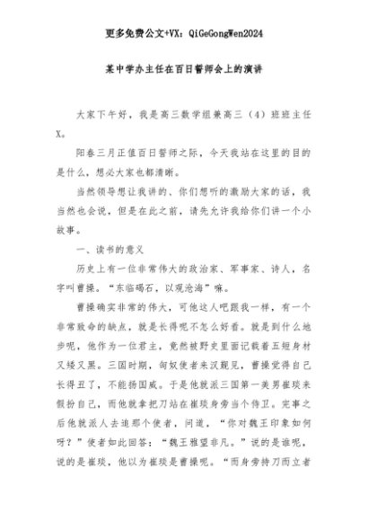 【七哥公文】2025年:某中学办主任在百日誓师会上的演讲+更多免费公文+VX:QiGeGongWen2024+更多免费公文+VX:QiGeGongWen2024