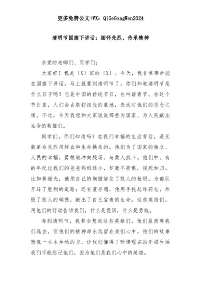 【七哥公文】2025年:清明节国旗下讲话:缅怀先烈,传承精神+更多免费公文+VX:QiGeGongWen2024+更多免费公文+VX:QiGeGongWen2024