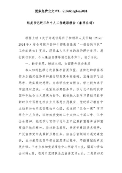 【七哥公文】2025年:纪委书记近三年个人工作述职报告(集团公司)+更多免费公文+VX:QiGeGongWen2024+更多免费公文+VX:QiGeGongWen2024