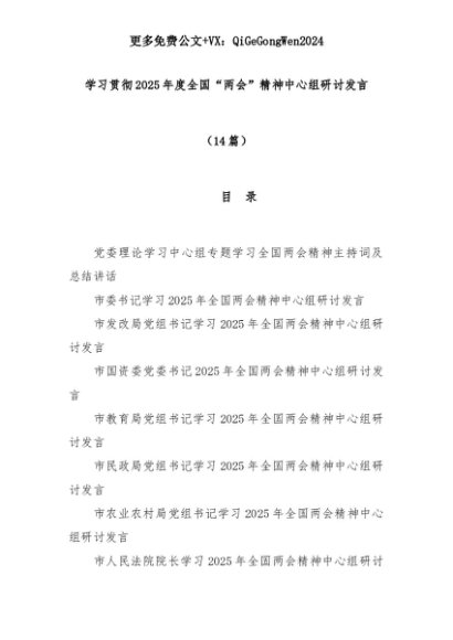 【七哥公文】2025年:(14篇)学习贯彻2025年度全国“两会”精神中心组研讨发言+更多免费公文+VX:QiGeGongWen2024+更多免费公文+VX:QiGeGongWen2024