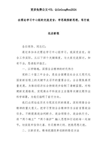 【七哥公文】2025年:在理论学习中心组的交流发言:学思践悟新思想,笃行致远启新程+更多免费公文+VX:QiGeGongWen2024+更多免费公文+VX:QiGeGongWen2024