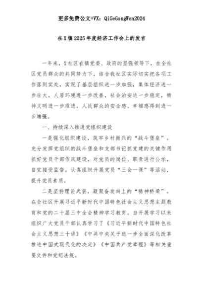 【七哥公文】2025年:在X镇2025年度经济工作会上的发言+更多免费公文+VX:QiGeGongWen2024+更多免费公文+VX:QiGeGongWen2024