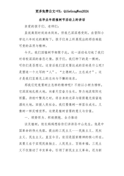 【七哥公文】2025年:在毕业年级植树节活动上的讲话+更多免费公文+VX:QiGeGongWen2024+更多免费公文+VX:QiGeGongWen2024