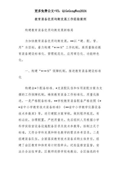 【七哥公文】2025年:教育装备优质均衡发展工作经验案例+更多免费公文+VX:QiGeGongWen2024+更多免费公文+VX:QiGeGongWen2024