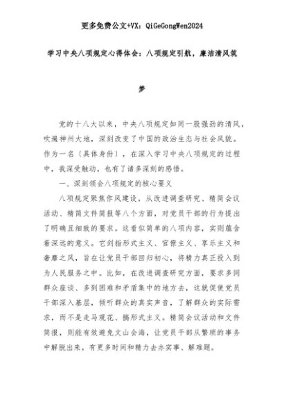 【七哥公文】2025年:学习中央八项规定心得体会:八项规定引航,廉洁清风筑梦+更多免费公文+VX:QiGeGongWen2024+更多免费公文+VX:QiGeGongWen2024