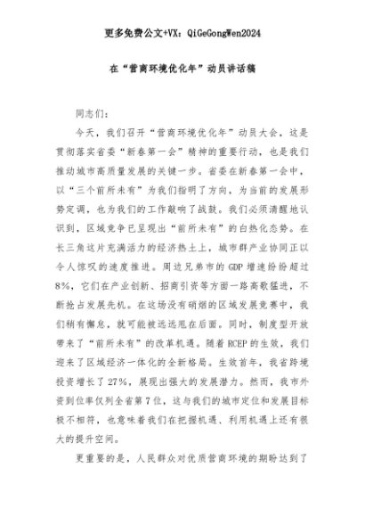 【七哥公文】2025年:在“营商环境优化年”动员讲话稿+更多免费公文+VX:QiGeGongWen2024+更多免费公文+VX:QiGeGongWen2024