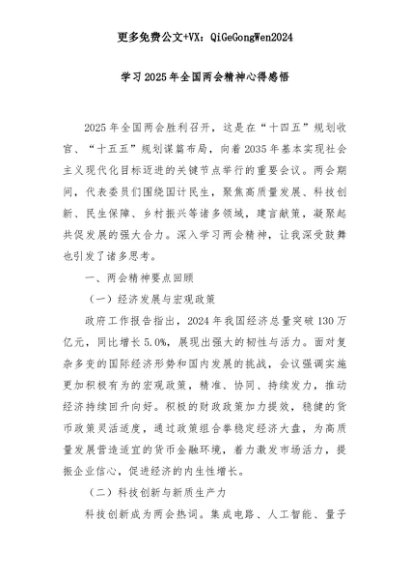 【七哥公文】2025年:学习2025年全国两会精神心得感悟+更多免费公文+VX:QiGeGongWen2024+更多免费公文+VX:QiGeGongWen2024