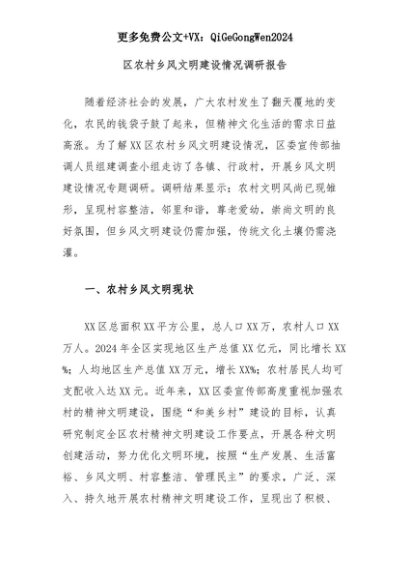 【七哥公文】2025年:区农村乡风文明建设情况调研报告+更多免费公文+VX:QiGeGongWen2024+更多免费公文+VX:QiGeGongWen2024
