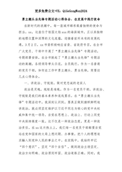 【七哥公文】2025年:勇立潮头当先锋专题活动心得体会:在发展中践行使命+更多免费公文+VX:QiGeGongWen2024+更多免费公文+VX:QiGeGongWen2024