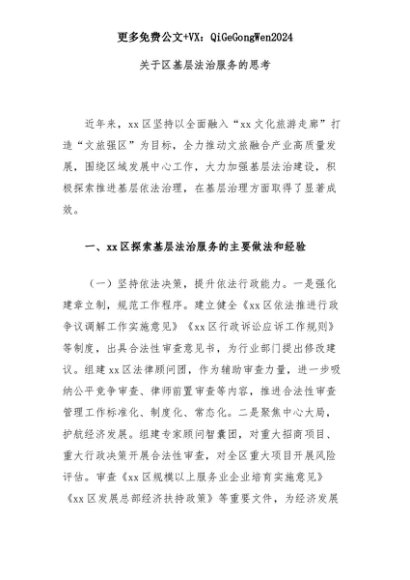 【七哥公文】2025年:关于区基层法治服务的思考+更多免费公文+VX:QiGeGongWen2024+更多免费公文+VX:QiGeGongWen2024