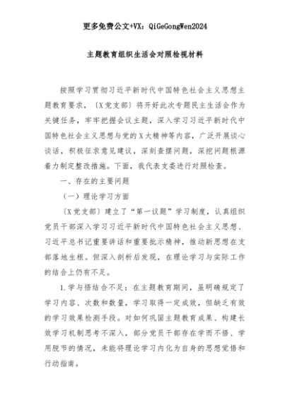 【七哥公文】2025年:主题教育组织生活会对照检视材料+更多免费公文+VX:QiGeGongWen2024+更多免费公文+VX:QiGeGongWen2024