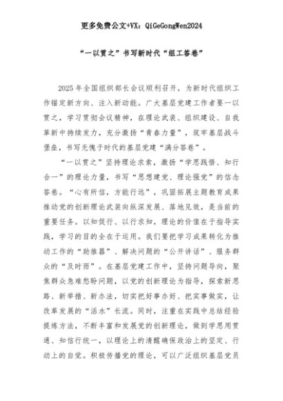 【七哥公文】2025年:“一以贯之”书写新时代“组工答卷”+更多免费公文+VX:QiGeGongWen2024+更多免费公文+VX:QiGeGongWen2024