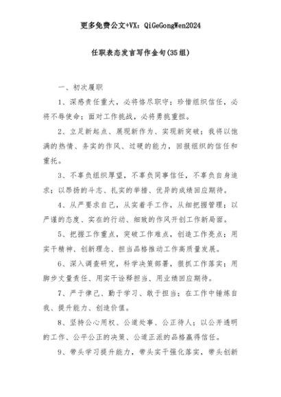 【七哥公文】2025年:(35组)任职表态发言写作金句+更多免费公文+VX:QiGeGongWen2024+更多免费公文+VX:QiGeGongWen2024