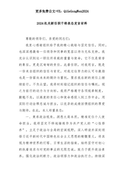【七哥公文】2025年:2024机关新任职干部表态发言材料+更多免费公文+VX:QiGeGongWen2024+更多免费公文+VX:QiGeGongWen2024