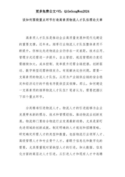 【七哥公文】2025年:谈如何围绕重点环节打造高素质物流人才队伍理论文章+更多免费公文+VX:QiGeGongWen2024+更多免费公文+VX:QiGeGongWen2024