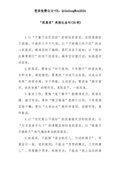【七哥公文】2025年:(30例)“抓落实”类排比金句+更多免费公文+VX:QiGeGongWen2024+更多免费公文+VX:QiGeGongWen2024