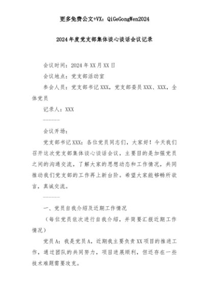 【七哥公文】2025年:2024年度党支部集体谈心谈话会议记录+更多免费公文+VX:QiGeGongWen2024+更多免费公文+VX:QiGeGongWen2024