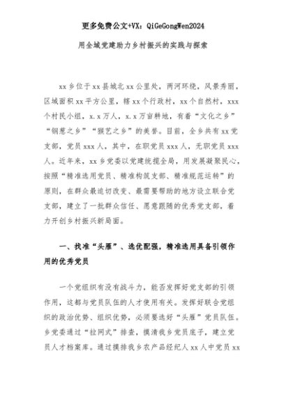 【七哥公文】2025年:用全域党建助力乡村振兴的实践与探索+更多免费公文+VX:QiGeGongWen2024+更多免费公文+VX:QiGeGongWen2024
