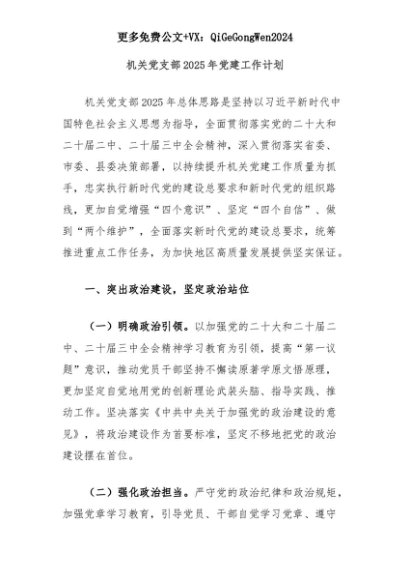 【七哥公文】2025年:机关党支部2025年党建工作计划+更多免费公文+VX:QiGeGongWen2024+更多免费公文+VX:QiGeGongWen2024