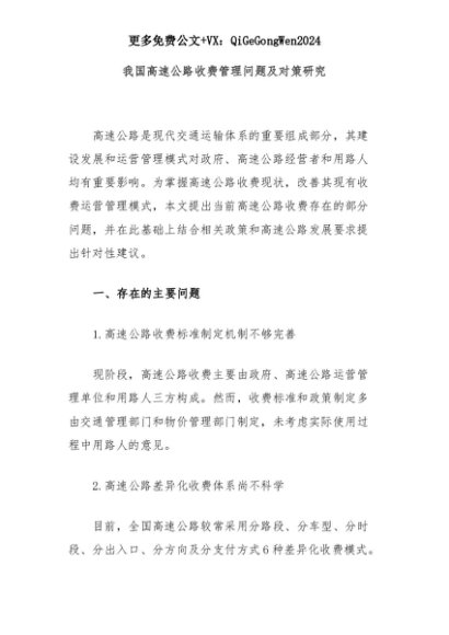 【七哥公文】2025年:我国高速公路收费管理问题及对策研究+更多免费公文+VX:QiGeGongWen2024+更多免费公文+VX:QiGeGongWen2024