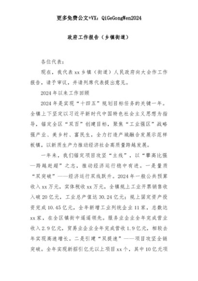 【七哥公文】2025年:政府工作报告(乡镇街道)+更多免费公文+VX:QiGeGongWen2024+更多免费公文+VX:QiGeGongWen2024